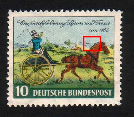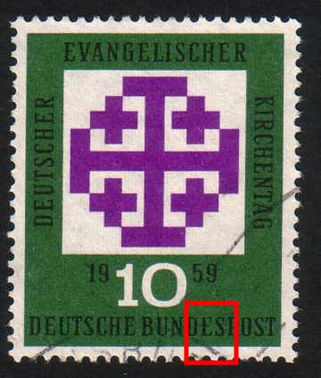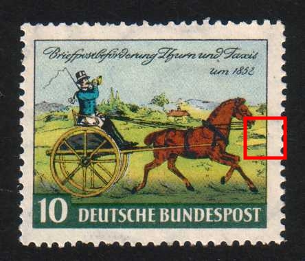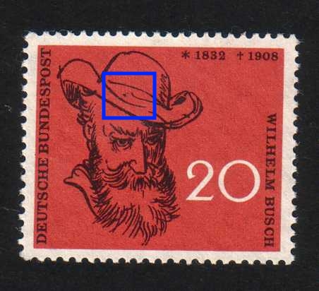 Hallo, noch sehr wenig Betrieb auf der Seite von „Bund-Plattenfehler 1949-1959“. Von mir trotzdem eine noch nicht bei veröffentlichte festgestellte Druckabweichung, die bei mir mehrmals vorhanden ist.