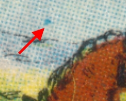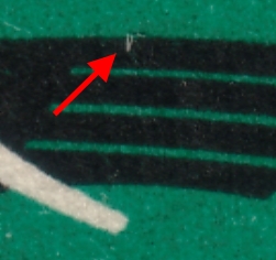 Bild 1: Den blauen Strich über dem oberen rechten Bildeck gibt's bei dem Bogen auf Feld 39. Wenn ich bei dem anderen Bogen ganz genau hinschaue kann ich dort auch einen blauen Strich sehen. Wahrscheinlich wird dieser nur bei einer Passerverschiebung sichtbar.