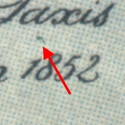 Abweichung: Blauer Fleck im rechten Markenbild, rechts der Jahreszahl "1852"