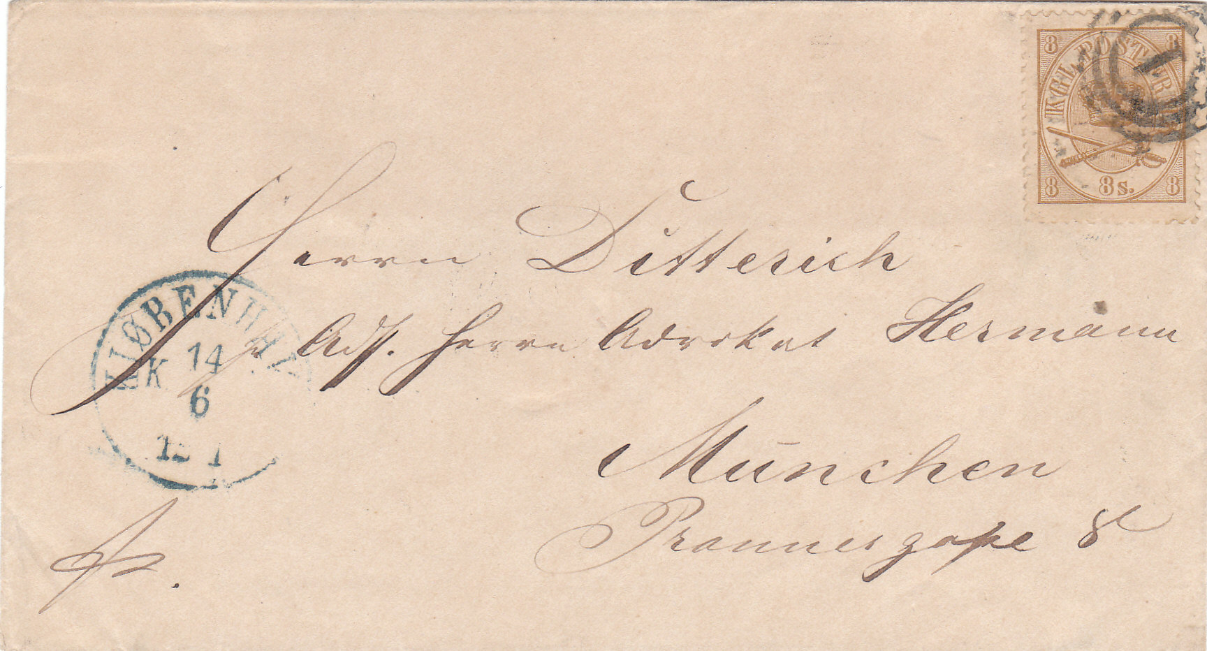 Sind schon frankierte Poststücke in der Markenzeit nicht häufig, so kann ich nur auf diesen einen Dienstbrief von Bayern nach Dänemark verweisen. Gerne hätte ich mehr.