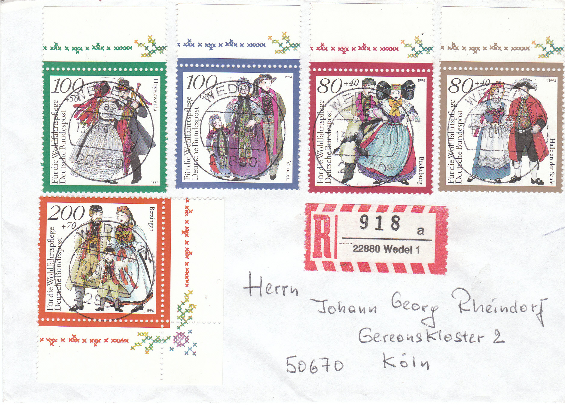 Satzbriefe haben meiner Meinung eine hohe philat.Ausstrahlungskraft -weil echt gelaufen-der ganze Satz vertreten-Briefmarke hat ihren ursprünglichen Zweck erfüllt um per Post transportiert und entwertet zu werden