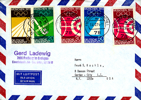 hier ein nicht ganz reiner Satzbrief. Der Brief vom 05.06.1936 brauchte zum Satz DR 617-620 noch eine Zusatzfrankatur von 1 Pf. Für den Orts-Einschreibe-Brief in der zweiten Gewichtsstufe 20-100 gr. waren 16 Pf für den Brief und 30 Pf für die Einschreibegebühr nötig. Der Brief war bei Erwerb verschlossen und hatte, als ich ihn geöffnete hatte nur eine unbeschriebene dickere Pappe enthalten. Zusammen kam der Brief plus Inhalt auf nur 16 gr. Hier war wohl ein "Philutelist"