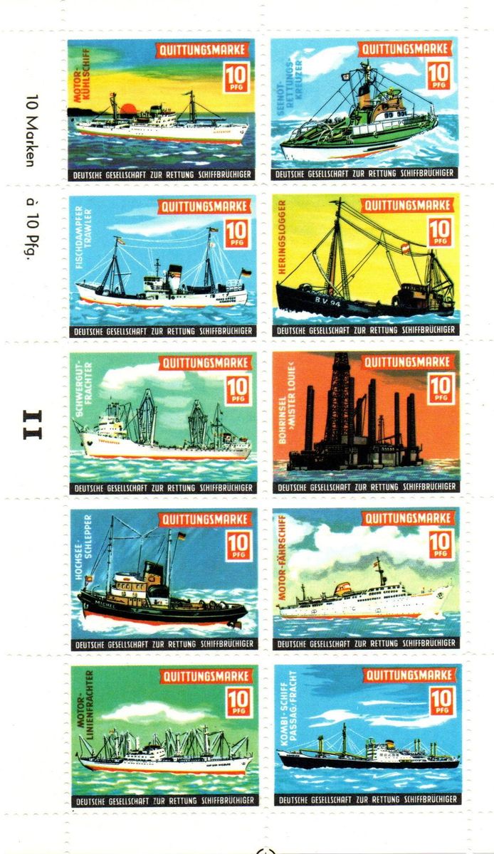 Ich fange mal mit den Quittungsnmarken genannten Spendenmarken der Deutschen Gesellschaft zur Rettung Schiffbrüchiger an. Einige findet man sehr häufig, andere scheinen nicht so oft vorzukommen.