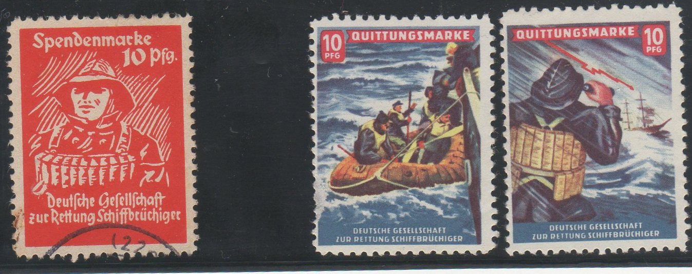 Ich fange mal mit den Quittungsnmarken genannten Spendenmarken der Deutschen Gesellschaft zur Rettung Schiffbrüchiger an. Einige findet man sehr häufig, andere scheinen nicht so oft vorzukommen.