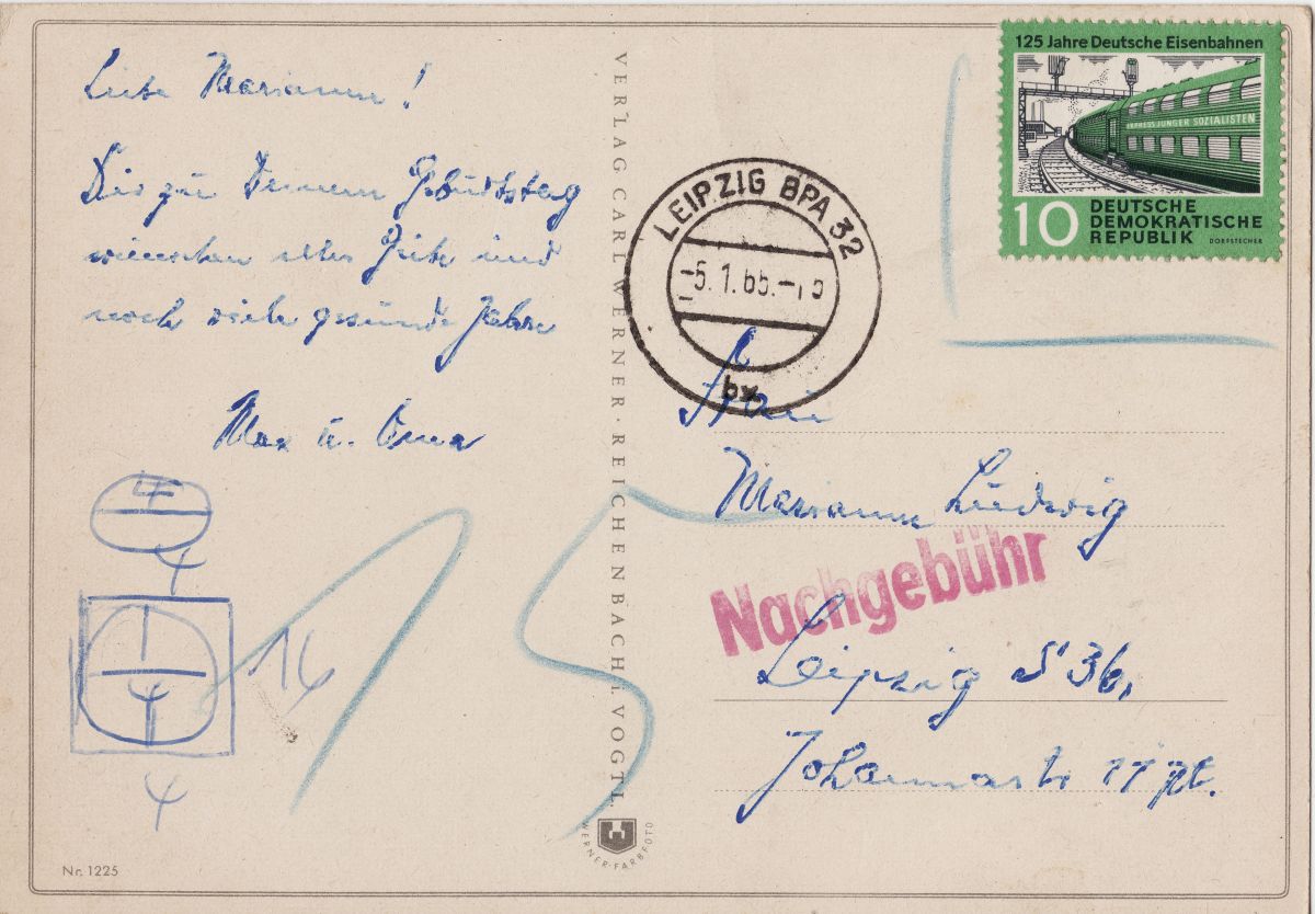 Auf die fehlenden 20 Pfennig kamen also nochmals 30 Pfennig Zuschlag was auch auf dem Brief (Blaustift "50" und Portostempel) vermerkt wurde.