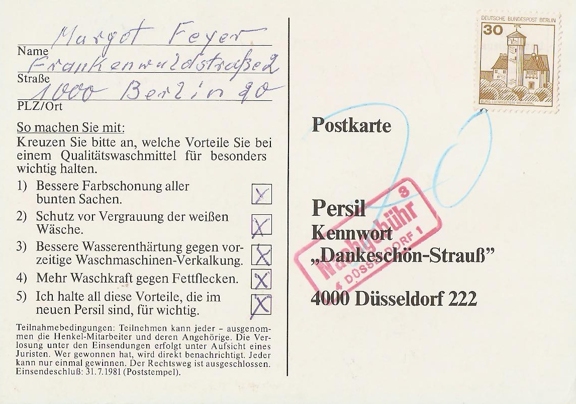 Der Brief wog unter 20 g, daher galt als Porto für die erste Gewichtsstufe 24 Pf sowie für das Einschreiben 60 Pf und es ergab sich die Portostufe 84 Pf.