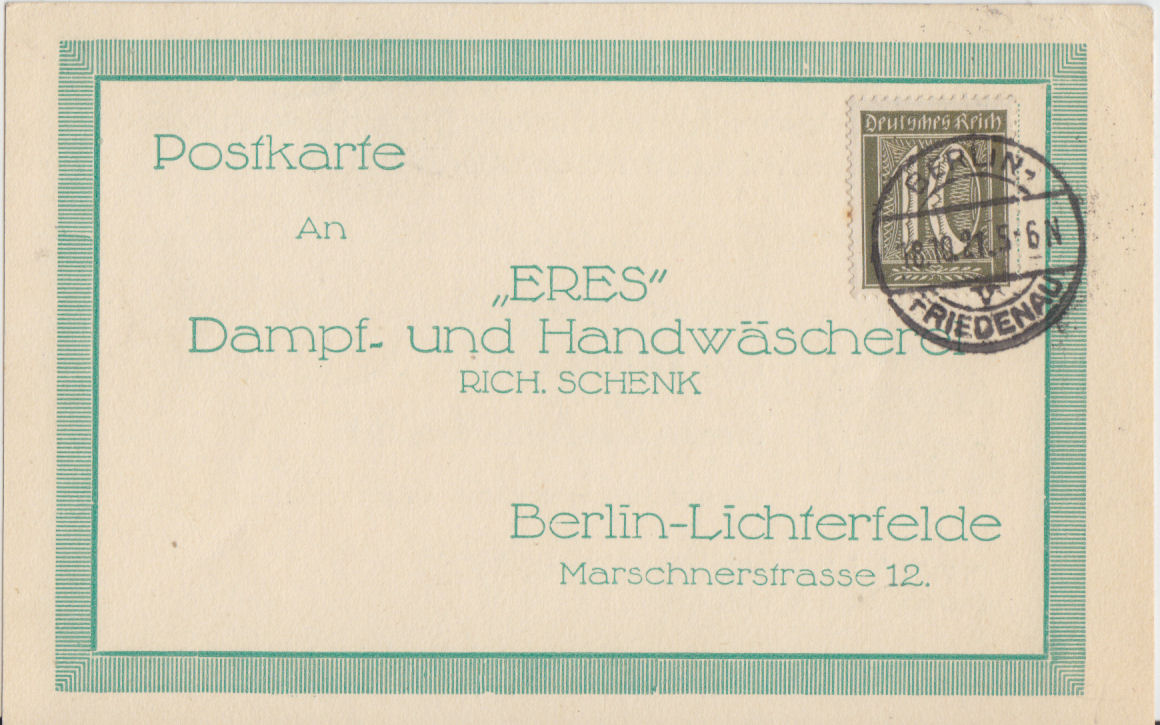 dieser Beleg ging in der Tat wegen der Adresse, deren Wörter bei der besonderen Sendungsart "Drucksachenkarte" mitgezählt wurden, nicht mehr als die besondere Sendungsart "Drucksachenkarte" durch, sondern wurde in diesem Fall als "Drucksache" zu 15 Pfennig Porto eingestuft!