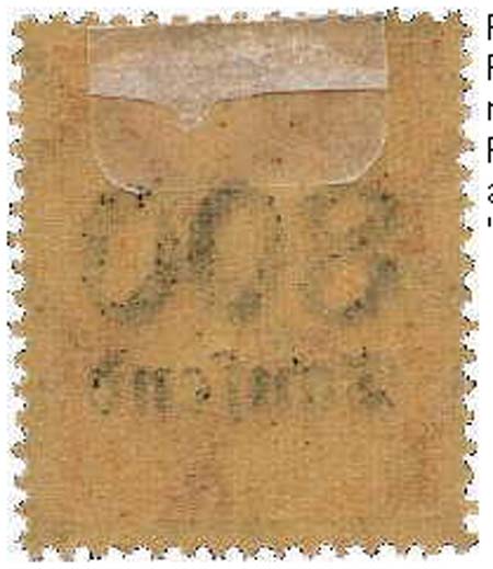 Es wurden nicht nur Falze aus Pergamin verwendet, sondern auch welche aus Kunststofffolie. Diese wurden mit einem eigenen Kleber angebracht, der mit der Zeit das Papier der Marke durchdrang und ölig aussehende Flecken verursachte.