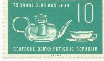 Teekanne auf DDR-Briefmarke. Ich habe sogar ein Orinal eines ähnlichen Teekännchens samt Tassen zu Hause, es funktioniert immer noch.