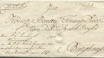 Obwohl der Brief zwischen zwei Landgerichte gelaufen war, war es hier keine portofreie Regierungssache, aber ein "Partheysache". Somit musste der Absender 4 Kreuzer für einen 2. Gewichtsstufe, 1. Taxrayon Brief bezahlen. Er hat aber vergessen der Brief frei zu vermerken.