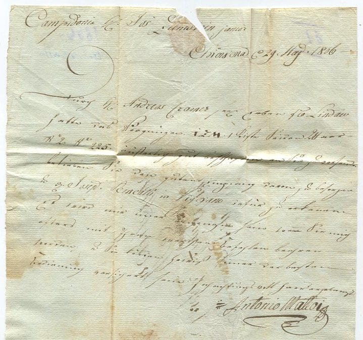 Brief aus Chiavenna (Lombardei) vom 29. Mai 1806