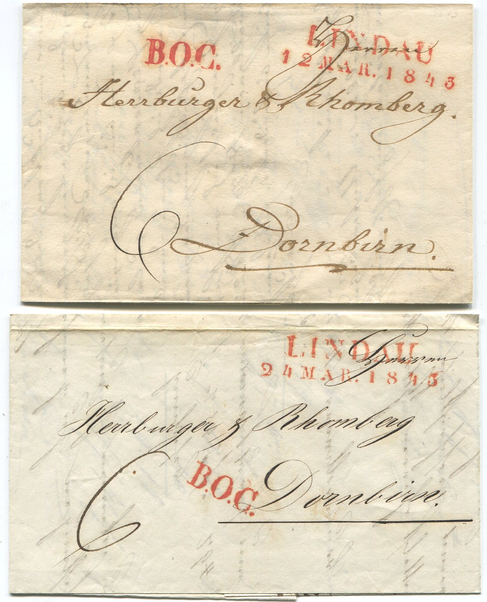 Was mir auch hier auffällt: Der BOC - Stempel scheint einen anderen Farbton zu haben, als der Aufgabestempel. Das kenne ich mehrfach von Lindau. Trifft meine Beobachtung am Original zu?