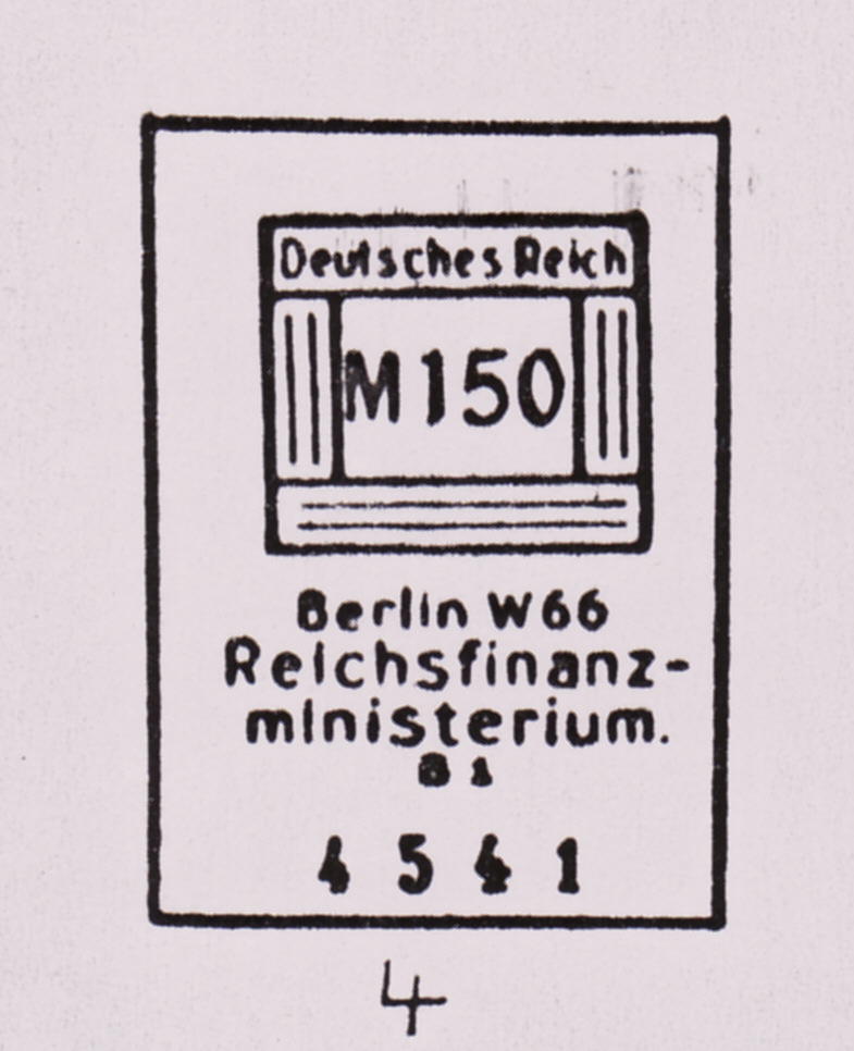 a) Apparatebezeichnung D.1. unterhalb des Wertrahmens, mit Reklametext "Reichskredit GmbH., Eichhornstr. 9, Berlin W 9" und