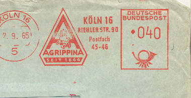 hier ein alter Freistempel aus Köln der Agrippina-Versicherung