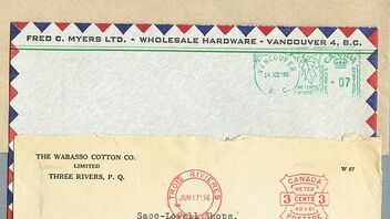 Japanische Freistempel sind häufig mittels labels angebracht. Hier sind 2 direkt auf Brief gestempelt.