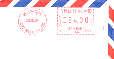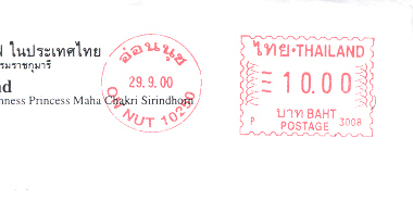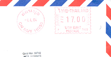 Hier einige Freistempel aus Thailand mit verschiedenen Wertaufdrucken. Diese Stempel sehen aus, als wenn sie nicht von einer Stempelmaschine aufgedruckt worden sind, sondern mit einem anderen Druckverfahren. Kann mir jemand näheres darüber sagen?