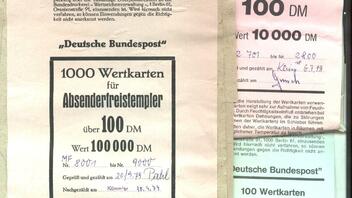 Gerade habe ich noch mal einen Blick in die Kiste vom Dachboden geworfen und zeige euch einige der Freistempelbelege - letzter Scan 3 Auslandbelege + 1 x Einschreiben mit Rückschein.