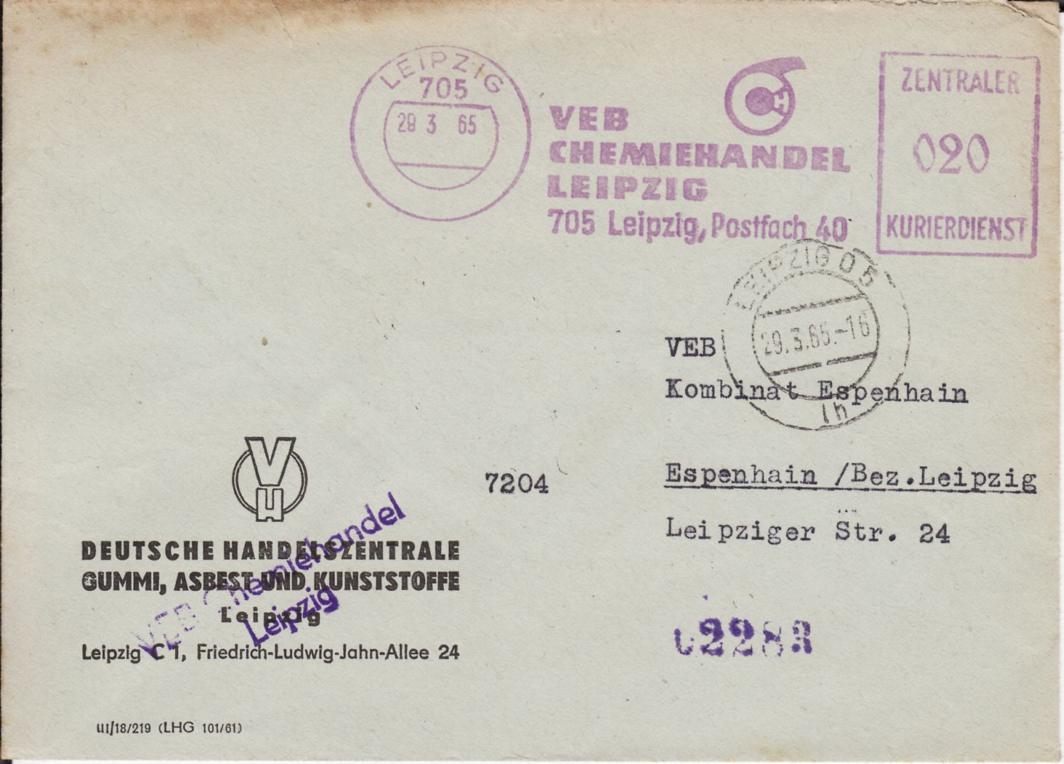 ich habe hier von fünf verschiedenen Leipziger Postämter Leipzig 1 (Innenstadt), Leipzig 3 (Eutritzsch), Leipzig 5 (Volkmarsdorf), Leipzig 21 (Eutritzsch) und Leipzig 31 (Plagwitz) behandelte Briefe des ZKD (Zentraler Kurierdienst). Dabei wurden hier AFS-Maschinen verwendet. Teilweise müssen dabei Maschinen aus der Zeit vor 1945 verwendet worden sein (Leipzig W31).