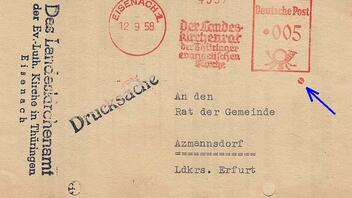 Interessant an diesem Freistempel aus dem Jahr 1958 der Schraubenkopfabdruck