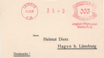 so sah der Absenderfreistempel der Firma Langbein-Pfannenhauser 1926 als Drucksache aus.