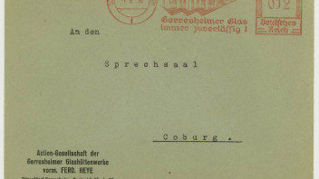 Gerresheimer Glashüttenwerke AG, Düsseldorf, Stempel vom 1.9.1936, mit schöner Abbildung von Glasgefäßen.