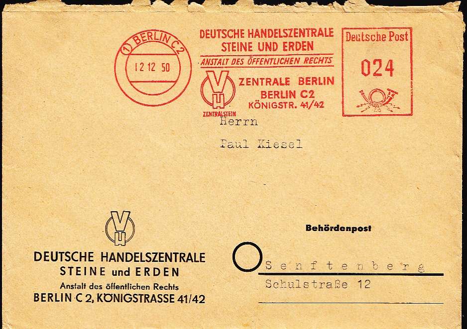 Interessant an diesem Freistempel aus dem Jahr 1958 der Schraubenkopfabdruck