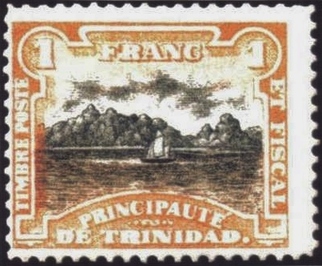 Ein besonders buntschillernder Vogel war James A. Harden-Hickley, ein französicher Abenteurer, allerdings gebürtig aus England. Er hatte die große Gabe, sich bei hohen kirchlichen Würdenträgern nützlich zu machen, Vertrauen zu erwecken und diese regelrecht um den Finger zu wickeln. Das Ergebnis konnte sich sehen lassen: Er erlangte die Würde eines päpstlichen Barons. Damit standen ihm natürlich viele Wege offen, und auf einer " Dienstreise " auf die Insel Trinidad im Süda tlantik kam ihm ein Geistesblitz- nicht zu verwechseln mit Trinidad & Tobago, die angesprochen Insel war völlig unbewohnt - gehört heute im übrigen als Trinidade zu Brasilien und wird von lediglich ca. 30 Soldaten der brasilianischen Armee beschützt. Kurz gesagt, er nahm dieses Eiland in seinen Besitz und tauchte dann als " Johann I Prinz von Trinidad " in New York auf. Er machte sich schnellstens an die Aufgabe heran, einen eigenen Postdienst für diese Insel aufzubauen und ließ Postwertzeichen in allen möglichen Wertstufen drucken, sogar Dienstmarken wurden von ihm nicht vergessen. Allerdings, ehe der selbsternannte Prinz als sein eigener Generalpostmeister auch nur eine einzige dieser Marken verkaufen konnte, wurde er entlarvt und mußte New York fluchtartig verlassen, alle seine gefundenen Postwertzeichen wurden vernichtet und es ist nach meinem Wissensstand auch nicht mehr eine einzige dieser Marken auf dem Markt.