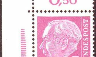 Beschreibung:5 Pfennig Heuss lumogen Plattendruck im Eckrand