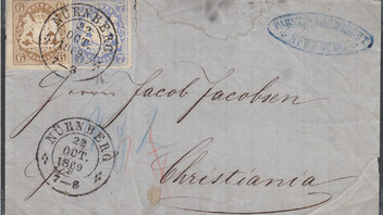 Im Falle einer Überfrankatur war das egal, wie ein Brief aus Nürnberg vom 22.10.1869 nach Oslo (Christiania) zeigt. Ab dem 15.4.1868 hätte er 12 Kr. gekostet, aber ab 15.7.1869 nur noch 10 Kr.. Die 3 Kr. Überfrankatur waren zu Gunsten der bayer. Staatskasse verloren.