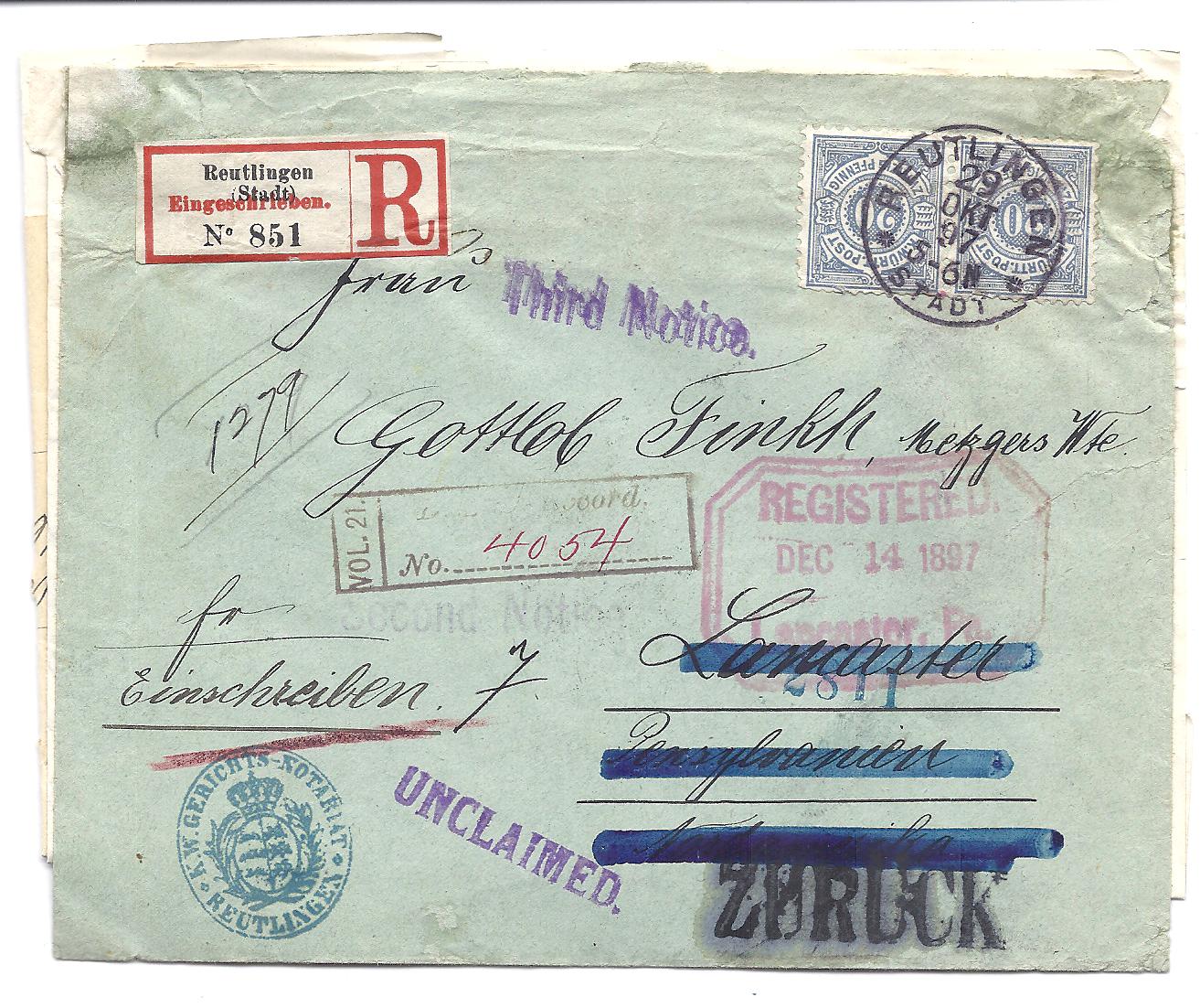Nun, da (überwiegend Bayern...) kann man Abhilfe schaffen. Mal zwei Belege aus Württemberg anbei. Der erste von Fürfeld nach Heilbronn, der zweite von Ellwangen nach Öhringen. Der erste ohne rückseitigen Vermerk, der zweite mit einem Gekriksel, das aussieht wie eine liegende S-Rune.