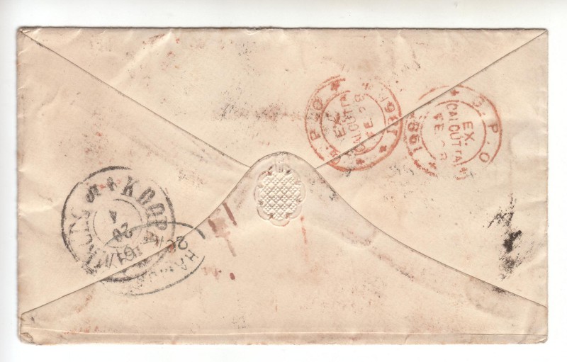 Der Brief wurde in Calcutta mit 15 Anna bezahlt.