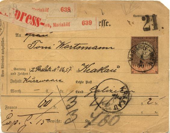 Der Weg wäre dann von Iglau über Furth im Wald (Bayern) auf der Eisenbahn Mühlacker-Straßburg nach Hagenau. Dort scheint das Paket im Hauptsteueramt gewesen zu sein.