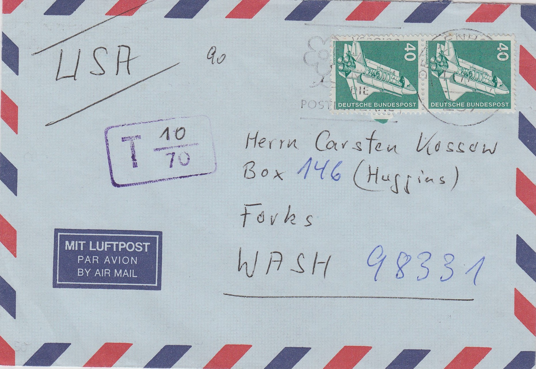 Die Briefmarke zeigt den Satelliten Telecom 1A, der am 04.08.1984 mit der Mission Ariane V10 gestartet worden war.