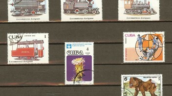 Die briefmarken fom Cuba,sin hauptsächlich vom themmen,flugzeuge,züge etc. und,Ich sammle sie nicht.