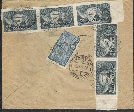 Im Anhang ein Beleg mit EF 10.000p., Aufdruck schwarz, Zeilenabstand 7,0mm