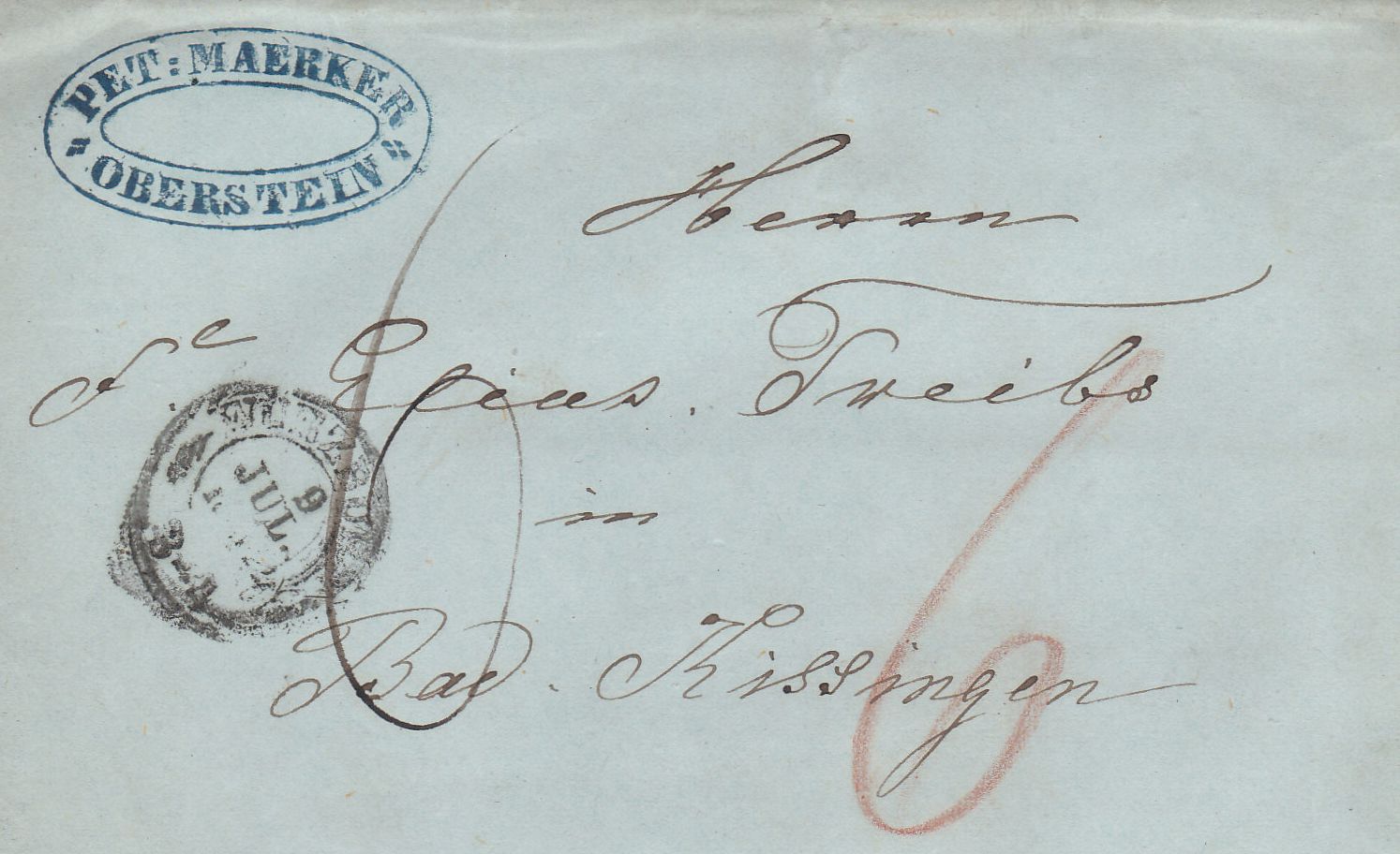auch 1854 gab es noch 2 Taxziffern auf einem Brief von Würzburg (Absender auch Maerker) zum Elias Treibs nach Kissigen.