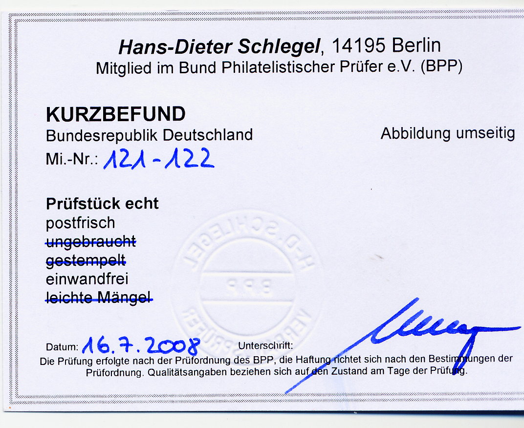 Übrigens wird ein Kurzbefund mit Foto (so heißt dieses "Attest" korrekt) nicht für jede 08/15-Marke ausgestellt und kostet auch eine entsprechende Gebühr. Wer aus Kostengründen lieber alles ungeprüft kauft/sammelt, soll sich bei einem etwaigen Verkauf nur nicht wundern, was er dafür als Preis erzielt bzw. wieviel in der Sammlung gefälscht oder unprüfbar ist.