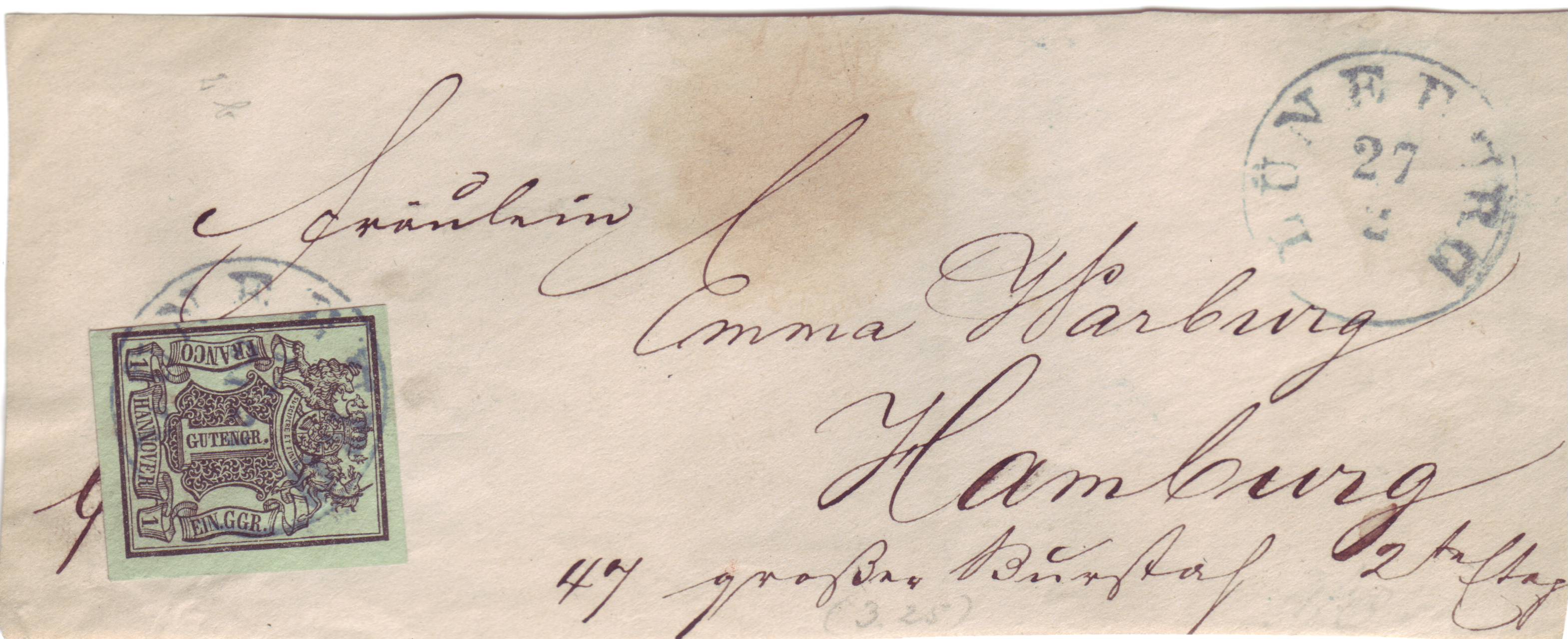 nach Bayern und Württemberg findet man Hannoverbriefe und - Ganzsachen sicherlich weniger häufig.