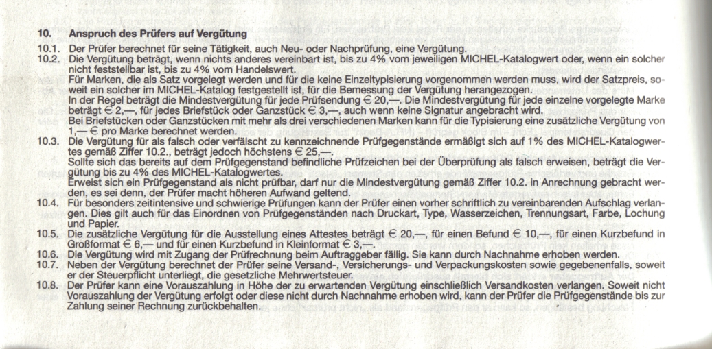Zitat aus dem Michel Katalog Deutschland Spezial Band 1 Jahr 2005/2006. Seite 934 (Auszug) ,siehe angehängtes Bild zur Prüfungsvergütung ! .