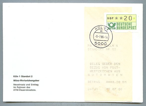 Am 24.10.2008 sind neue ATM- Motive erschienen. Ich konnte es mir doch nicht verkneifen und war eh beruflich auf dem Weg durch Bielefeld und habe mir Briefe zurechtgemacht. Einwurf- und Übergabeeinschreiben und normales Porto. Dann um die 2 versch. Motive auf Blankobeleg mit Ersttagsstempel. Am Automat standen schon die ersten Sammler- teilweise mit weiten Strecken, nur um diese neuen Motive zu ziehen!