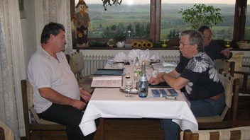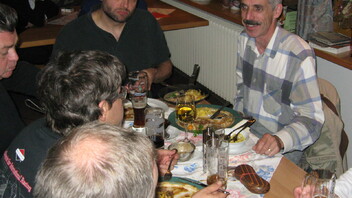 Nachtessen im Restaurant bei den Sporthallen in Schöneich. Inzwischen sind auch Kauli und Wajdz8 zu uns gestossen.
