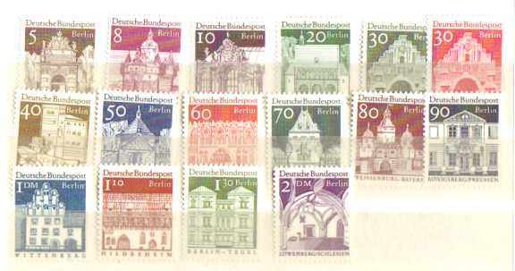 Ein kompletter Satz "Bauten groß" (Michelnr. 270 bis 285):