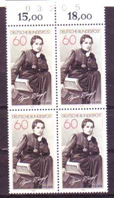 Bund Michelnr. 1001 als 4er-Block vom Oberrand mit Bogenzählnummer: