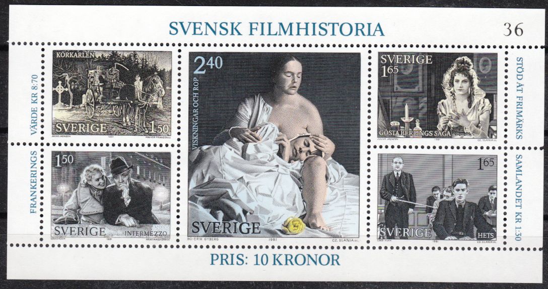 und noch ein schwedischer Kleinbogen/Block mit einer etwas düsteren Darstellung dieses Fuhrwerks (1981)
