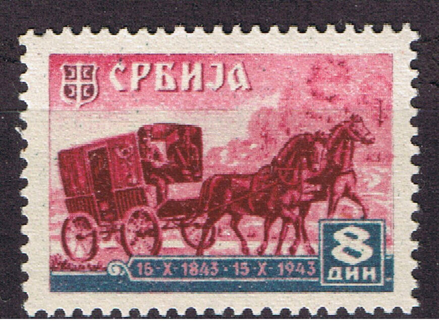 So,das ist nun die letzte echte Postkutsche - Serbien Nr 95 aus den Satz 100 Jahre serbische Post 1843-1943