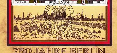 die Großstadt ausdehnt, wurden vor zweihundert Jahren noch Feldfrüchte vor den damaligen Stadttoren angebaut. Auf dieser Gedenkkarte zur 750-Jahrfeier sind im Zudeuck zwei Ackerfuhrwerke dargestellt.
