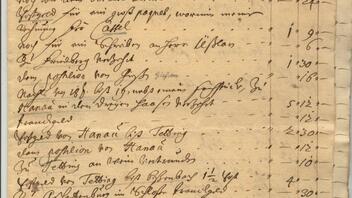 Ein kleiner Teil einer Kostenabrechnung einer Fahrt durch Mitteleuropa mit Postkutschen eines Unbekannten, der mit einem Herrn " de Strin???" 2 Monate durch die Lande fuhr.