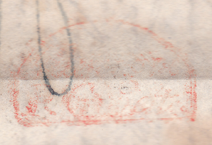 Es gibt vorderseitig 2 Taxierungen: 14 (GGr. ??) mit Rötelstift und eine französische Notierung 12 (Dec. ?? eigentlich zu viel, oder ?)