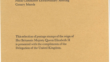 Nicht sehr häufig anzutreffen sind die Geschenkbücher der Delegierten zu den Postkonferenzen der CEPT. Dieses Büchlein- hier abgebildet- hat 6 gefaltete Bögen (5 Marken und 1 FDC) mit Briefmarken und eine kurze Beschreibung zu den Marken. Es sind Marken des Jahrgangs 1973 enthalten.