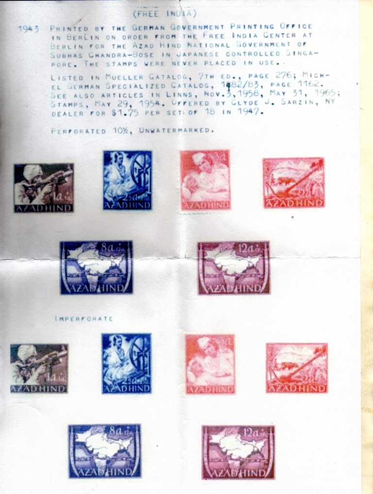 In meinem alten Michel stehen die für die indische Nationalregierung unter Subhas Chandra Bose vorbereiteten Marken mit dem Schriftzug AZAD HIND nicht bei Deutsche Besetzungsausgaben 1939-1945 (Indien war ja auch nicht von den Deutschen besetzt) und auch nicht unter Feldpost, sonders als eigenes Kapitel zwischen Deutsche Dienstpost und Deutsche Lokalausgaben. Von Privatausgabe steht da auch nichts. Ich nehme mal an, das ist noch immer so ?